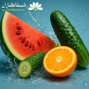 - مصرف میوهها و سبزیجات آبدار مانند خیار، هندوانه، کرفس و پرتقال