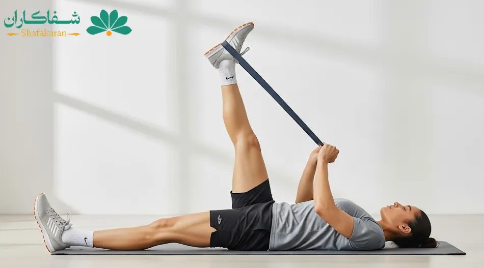 | بالا بردن پای صاف (Straight leg raise) | ۳ ست × ۱۰ تکرار | تقویت عضله چهارسر ران |