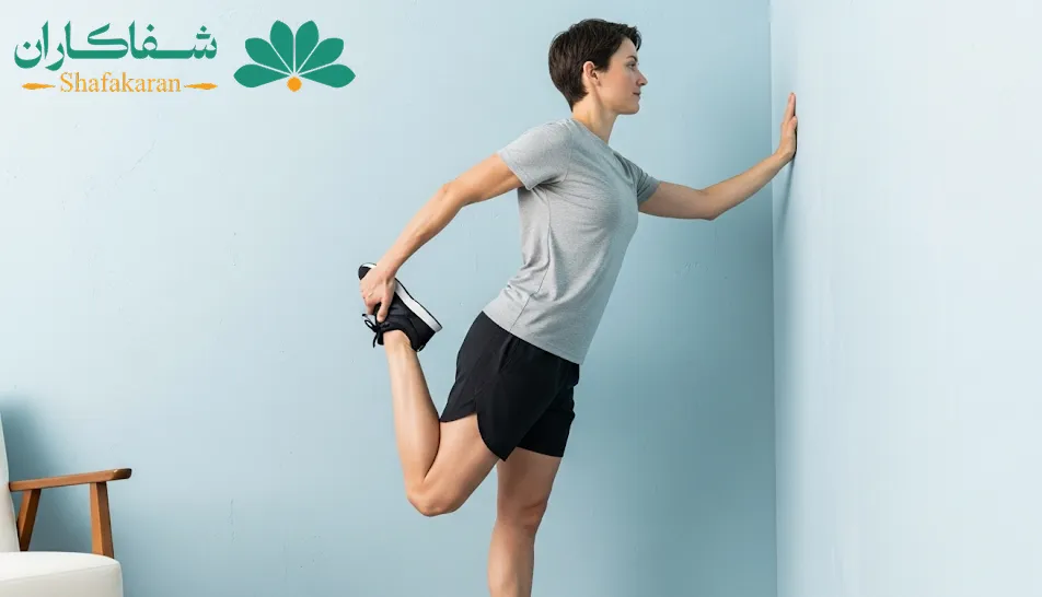 | کشش ساق پا با دیوار | ۲ بار × ۳۰ ثانیه | کاهش فشار روی زانو و افزایش انعطاف |