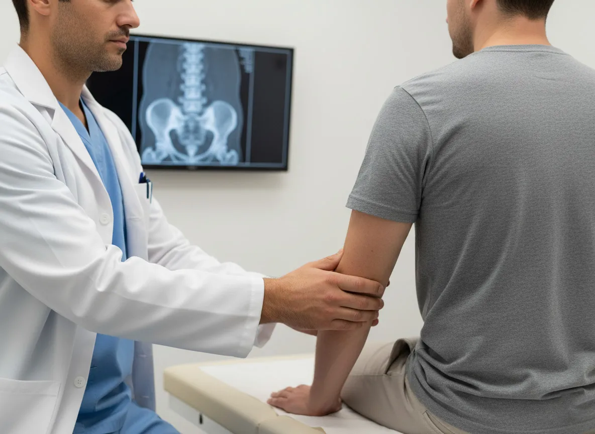 - شرح حال دقیق بیمار: پزشک درباره نوع درد، محل انتشار، مدت زمان بروز علائم و سابقه آسیب یا فعالیتهای سنگین سؤال میکند.