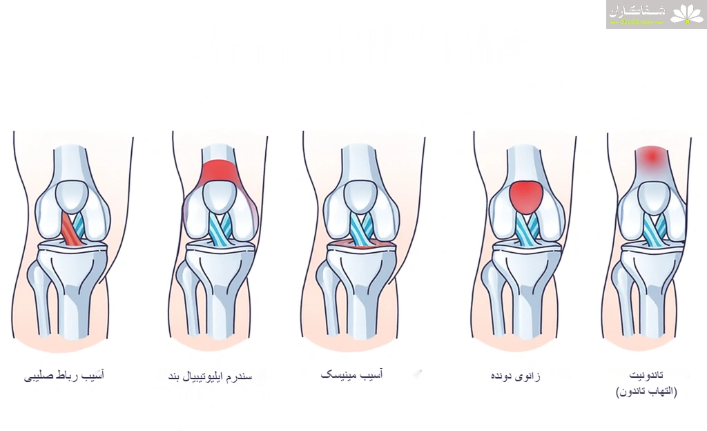 | تاندونیت کشکک | پرش مکرر، دویدن روی سطح سفت | درد زیر کشکک، حساسیت به لمس |