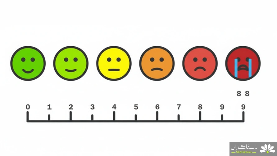 برای ارزیابی شدت درد معمولاً از مقیاس عددی ۰ تا ۱۰ استفاده میشود: